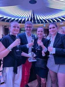 Dans le cadre du concours Freepack dont les résultats seront connus lors de VSPack qui a lieu du 5 au 7 Décembre de cette année, les élèves de FSPack ont concouru à l’oscar de l’emballage. Organisé par Infopro, plus de150 professionnels étaient réunis à Paris ce lundi 27 Novembre afin de connaitre les lauréats des 19 catégories. C’est à cette occasion que nos étudiantes Lyne Lombard et Chloé Latournerie se sont vues décerner le prix « débuts prometteurs- étudiants » . C’est avec une grande fierté que les enseignants Jérôme Fruchard et Sandrine Jutan les ont accompagnées et fêté cette belle distinction, reconnaissance du travail effectué par l’ensemble de la formation…